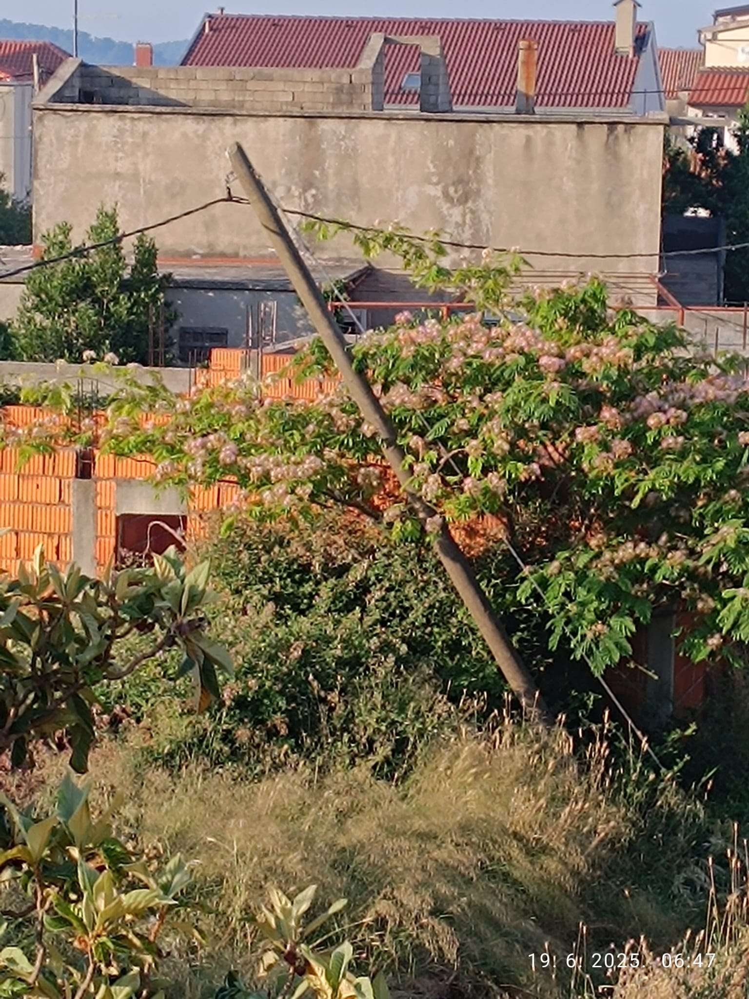 Drveni stup HEP- u vidljivo lošem stanju pred padom vidljivo na priloženim slikama.